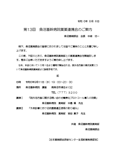 会場魚沼基幹病院 講堂
